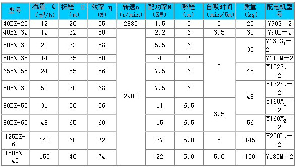 BZ型泵是单级离心式自吸泵。适用于输送清水和物理化学性质类似清水的其他液体,被输送液体 高温度不得超过80℃。可广泛应用于城市、乡村的自来水水塔提水,农田排灌、喷灌、工业给水和生活用水。 BZ型泵是一种新型的水泵,具有启动时不需加引水,就能把水管中的空气排除,将水吸上来,与液位自动控制箱配套,使该泵具有自动供排水的功能。